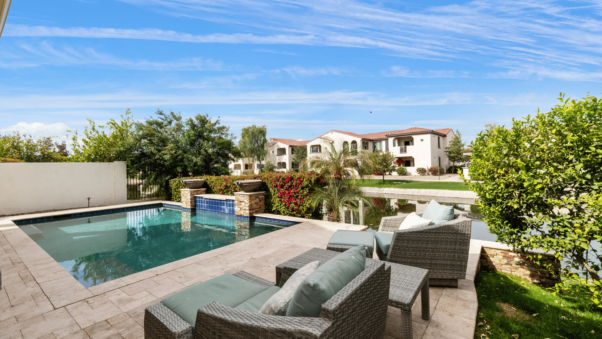 5 bedrooms, 8 beds, a loft, and a heated saltwater pool with lakefront views. Enjoy modern luxury near top restaurants and corporate hubs
